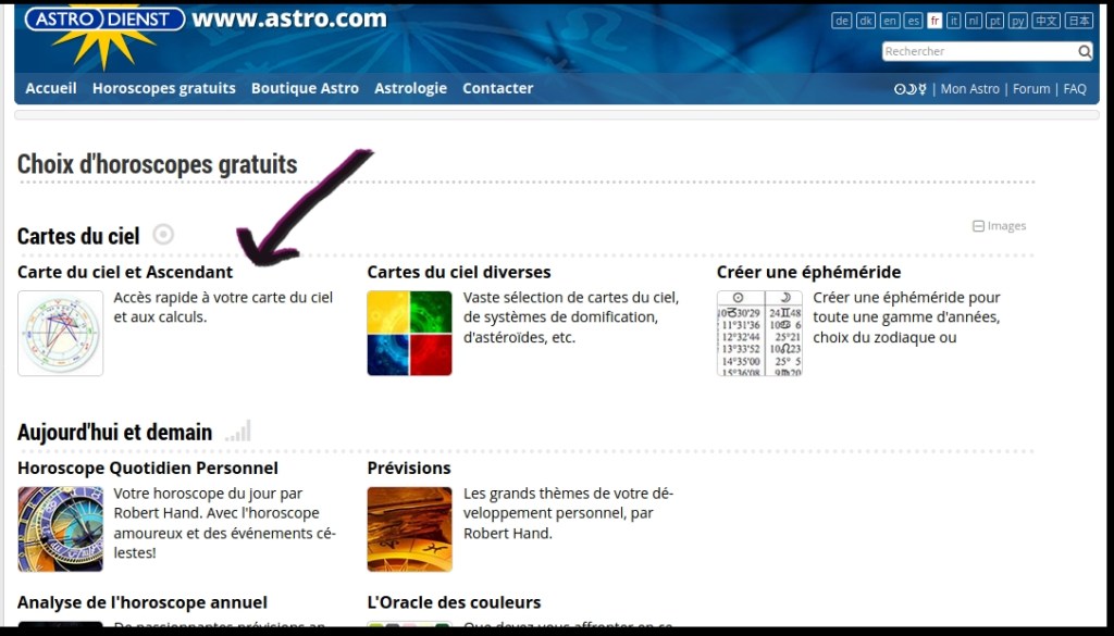[…] thème natal. Si vous utilisez astro.com et que vous avez déjà lu l’article « Faire sa carte natale en ligne« , il vous suffit d’ajouter une étape. Dans la catégorie « Cartes du […]