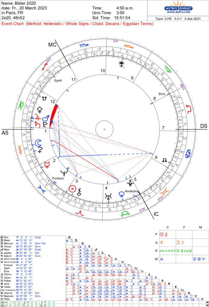 Pour référence, voici le thème de l’entrée en Bélier de 2020 à Paris, que je n’analyserai pas aussi longuement toutefois.