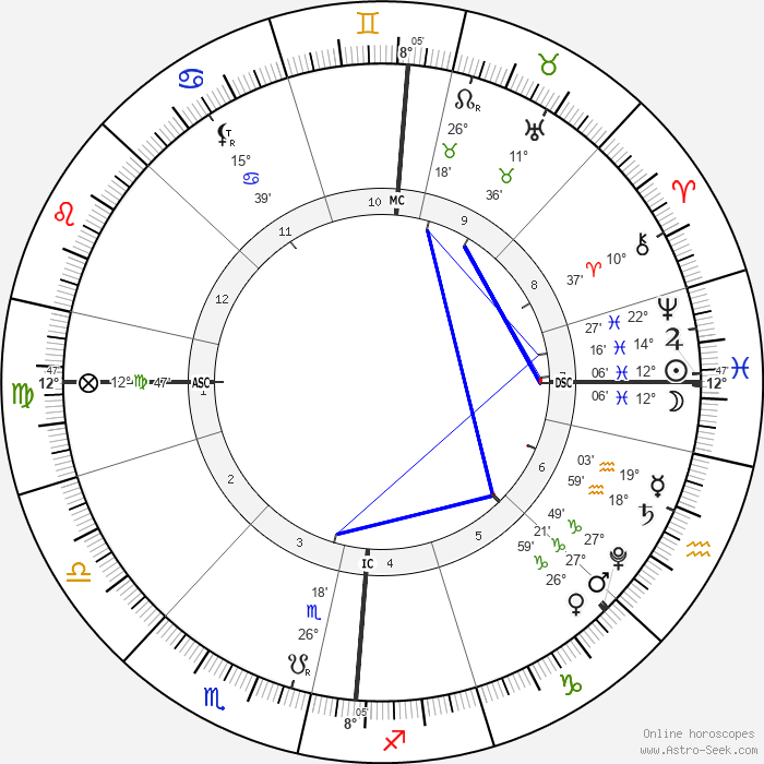 Pourquoi Mercure, redoutable arme de la langue comme le dit l’hymne Orphique, n’est pas à l’aise chez Jupiter ? Ce n’est pas parce que quelqu’un qui a Mercure en Poissons serait « bête » ou même forcément tête en l’air. C’est parce qu’avoir une vision englobante, qui contextualise, qui lie des choses disparates pour former un tout cohérent, qui a du sens… Cela ne facilite pas une expression concise et efficace ! Lorsque l’on conçoit les choses de manière intuitive, fluide, sensible comme peut le refléter Mercure en Poissons, arriver à se faire comprendre peut représenter un défi. Comment synthétiser tout ce que l’on perçoit, tout ce que l’on ressent ? Mercure en Poissons préfère la poésie aux protocoles. Et on trouve donc de nombreux·ses écrivain·es et poètes·ses avec ce placement ; Maya Angelou, Charles Baudelaire, James Joyce, Henrik Ibsen, Victor Hugo… Côté astrologues, on peut citer Reinhold Ebertin, Bernadette Brady, Dane Rudhyar, Joan Quigley. Chez les philosophes, Arthur Schopenhauer, Paul Ricoeur. Les politicien·nes Al Gore, Cécile Duflot, Thomas Paine, Paul Vergès, Aristide Briand, Philippe de Villiers. Les mathématiciens Galilée et Copernic avaient également Mercure en Poissons ! Et, bien sûr, des musicien·nes. Par exemple, Kurt Cobain est né avec un Ascendant Vierge dirigé par Mercure en Poissons, conjoint à Vénus, qui est elle exaltée dans ce signe, et Saturne. Jupiter, qui les dirige, se trouve exalté en Cancer avec la Lune en domicile. Le pape Benoît XVI a Mercure en Poissons en maison 1 avec Jupiter et Uranus ; ici la facette religieuse de Jupiter (qui gouverne aussi le Milieu du Ciel) s’illustre de manière particulièrement flagrante.