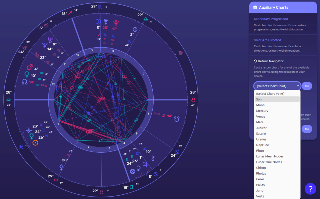 […] Ci-dessous, le thème du moment de l’entrée de Vénus en Scorpion en 2023, généré avec le logiciel en ligne LUNA. […]
