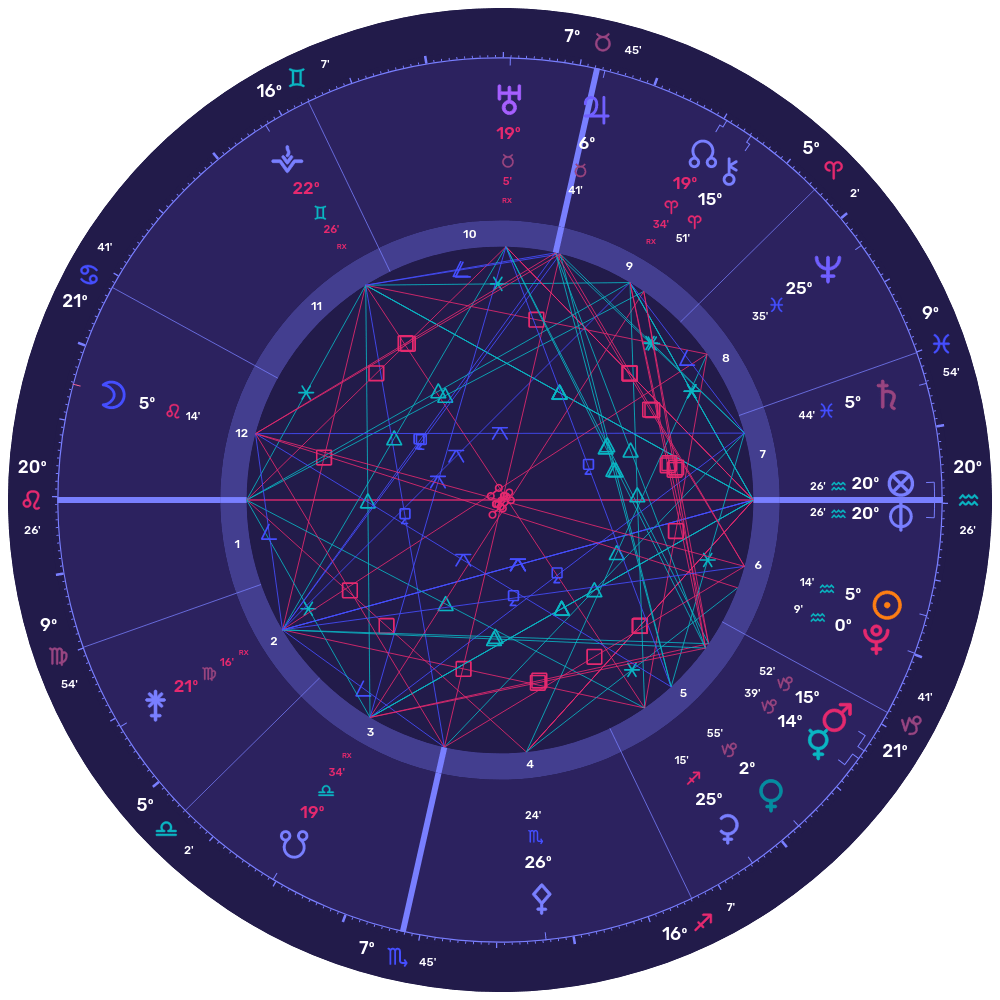 Après quelques années de Saturne en Verseau en coprésence au Soleil à ces occasions, nous avons maintenant la première Pleine Lune en Lion sans aspect à Saturne depuis février 2020. Les aspects durs de Saturne, planète de la lenteur et de la structure, refroidissent et alourdissent ; la Pleine Lune en Lion en est libérée après 3 ans d’opposition. Cependant, c’est aussi la première Pleine Lune en Lion avec le Soleil en coprésence à Pluton depuis février 1798, et la première lunaison depuis l’entrée de Pluton en Verseau en 2024 ! Pluton est associée à l’intensité, l’outremonde, les extrêmes, et sa présence n’est pas particulièrement légère, même en comparaison à celle de Saturne. La présence de Pluton en opposition partile à la Pleine Lune l’intensifie, c’est une super-charge. Le projecteur devient les pleins feux. Pluton sait rendre immense ce qui est minuscule, et rétrécir ce qui est gigantesque ; c’est à la fois une force qui catalyse et qui bloque. Pluton représente aussi la peur liée à l’ambiguïté, l’anxiété née de la catastrophisation, des « Et si… ? » ; ici, la Lune pourrait indiquer le fait de se lancer et d’oser briller malgré les doutes, l’angoisse, la pression. On peut aussi considérer la manière dont le processus de maturation engagé durant le transit de Saturne en Verseau en 2020-2023 a pavé le chemin pour la transformation en profondeur que marque le transit de Pluton en Verseau.